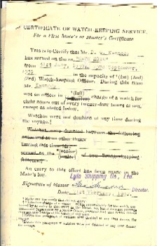 Watch Certificate for the Cape Howe