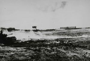 Belsen Concentration Camp - the smouldering site.