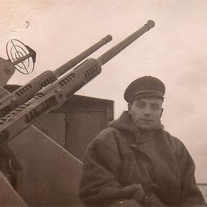 Harry Wright by twin Oerlikon gun on board HMS Kent