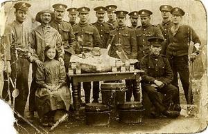 Frederick Fisher was a bass baritone and is shown in this postcard image from France, in a sou’wester, with a group of World War One soldiers, believed to be of the East Yorkshire Regiment. There is a great deal of mystery surrounding this image and the family would love to hear from you if you can shed any light. For instance;