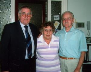 17 September 2005 (Left to right): Tom Coyne, Joan Toner, Joe Toner. During WW2 Tom was evacuated to Whitehaven and stayed with Jack and Elizabeth Finnegan, who were Joe’s Uncle and Aunt. They were able to share many wartime memories [Photograph by Joseph Ritson]