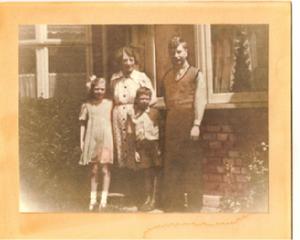 First colour photo - Dufay colour. Hobbs family 1939: Margaret, Mum (Rose)Michael, Dennis. Dad took the photo with his Brownie Box Camera