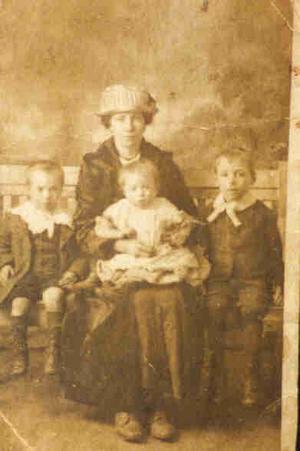 The Three Brothers French: Tom, Jim, & Bill with their Aunt Beck during First World War.