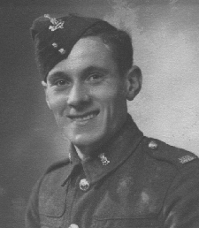 A flail tank had gone into the assault on King beach before us to make a path through the minefield which ran along behind the beaches. Unfortunately, it had been knocked out and was standing on the beach about ten yards from the sand dunes. The crew had bailed out and had continued, under fire, to make a path across the minefield and had taped it. Our old company commander, Captain Hull, having been promoted to Major, was on a signal ship and keeping in touch with proceedings. We now had a new C.O., Captain Linn; tragically he was very soon wounded on the run up the beach. I saw him resting with his back against the tank and while he was in that position received a second wound which proved fatal. He was such a good man. The second in command, Captain Chambers, now took over and he too was wounded but was able to carry on his duties. At this time we lost Sergeant Burns but I never did get to know how many others were actually killed on the beach.