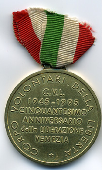 A commemorative medal presented to me in Mirano in 1996. The medal reads 'Fiftieth Anniversary of the Liberation of Venice'.