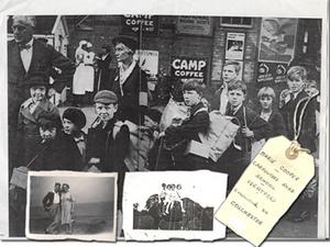 My brother Ron, aged 11, my sister, aged 8 and I were evacuated together to a village called Boxsted, Essex. I cannot remember how long it took us to get there but I do vividly remember standing on the platform waiting for the train with all the other children. I wore a navy blue coat, with long socks and shoes and around my neck hung a label with my name on. I also had with me my gas mask, which I carried in a cream box. Until that time I had never even been out of the East End of London.
