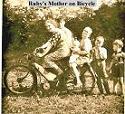 Ruby's mother on a bicycle (she was in her 60's. Also son-in-law Bill Thompson,baby Norman Thompson, Mervyn Thompson, Raymond Thompson (7 years old) and George Purdy (4 years old).