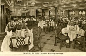 A portion of the First Class Dining Saloon aboard the P. & O. S.S. Rajputana