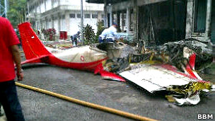 Seorang wartawan lokal yang meliput Bandung Air Show kepada BBC Indonesia mengatakan ada dua orang di dalam pesawat latih AS-202 Bravo tersebut.