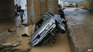 Diantara korban tewas terdapat dua anak yang tenggelam dalam sebuah mobil yang tersapu banjir di kota Puerto Lumbreras, demikian sebagaimana dilaporkan kantor berita AP.