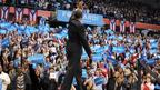• Presiden Barack Obama melambaikan tangan ke arah pendukug di Cincinnati, Ohio hari Minggu tanggal 4 November. Romney dan Obama berkeliling ke negara-negara bagian yang menentukan menjelang pemilihan presiden yang dilaporkan akan sangat ketat.