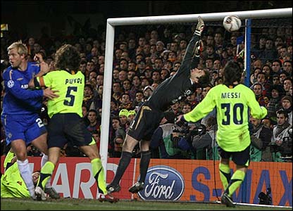 Chelsea mengejutkan Barcelona sewaktu bola yang lepas dari tendangan bebas Frank Lampard menjadi gol bunuh diri oleh Thiago Motta.