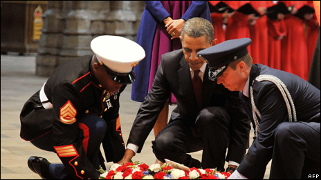 The public got their first glimpse of the Obamas when they visited Westminster Abbey, where the president laid a wreath at the Tomb of the Unknown Warrior.