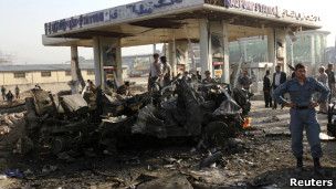 د کابل د جنايي جرمونو پر وړاندې د مبارزې ادارې مشر جنرال ظاهر بي بي سي ته وويل: "ځانمرګی بريد کوونکی په کرولا موټر کې سپور و، چې د شرکت کارکوونکو لېږدوونکی موټر يې په نښه کړی".