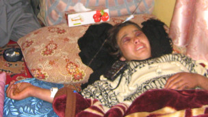 منیژه له مېرمنو سره د مرستې د یو مرکز له خوا چې د هاکا په نوم بنسټ له خوا اداره کېږي په کابل کې علي اباد روغتون ته یوړل شوه.