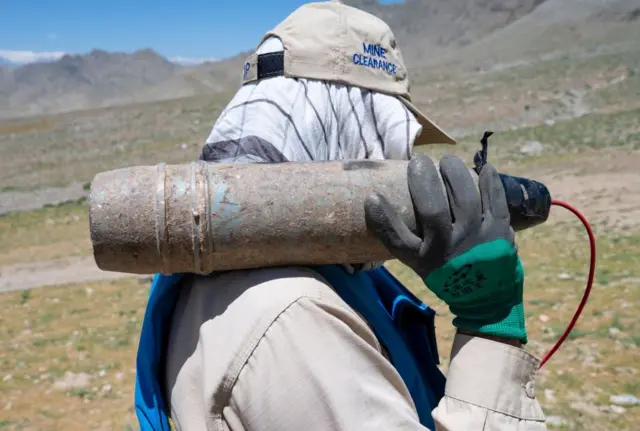د عکس تشریح، له افغانستان سره د امریکا د مرستو بندېدو او د نورو مرستندویه هېوادونو د مرستو کمېدو سره، په افغانستان کې د ماین پاکۍ پروګرامونه هم په جدي ډول اغېزمن شوي دي. ارشیف تصویر