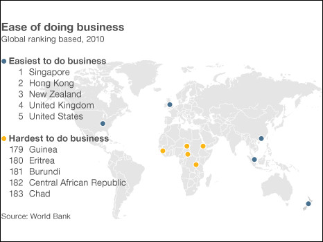 سينګاپور د اسانه سوداګرۍ په اړه د نړيوال بانك شمېرو په سر كې راځي، هانګ كانګ ورپسې دى او نوى زيلنډ درېيم ځاى نيسي. چاد د ۱۸۳ هېوادونو د لست په پاى كې ځاى لري.
