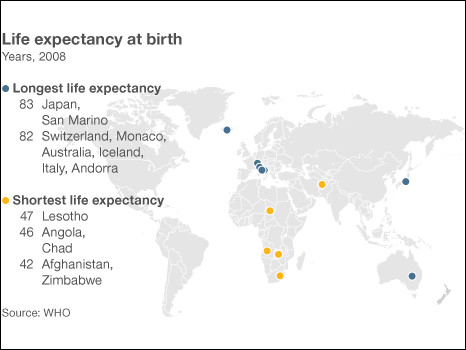 افغانستان کې د عمر اټکل ٤٢ کلونو ته رسيږي خو جاپان د نړۍ تر ټولو زيات عمر لرونکي خلک لري.