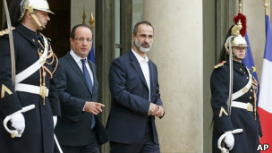 دا اعلان د سوریې د اپوزېسیون ګوندونو د ایتلاف د مشر معز الخطیب او ښاغلي اولاند ترمنځ له خبرو وروسته په پاریس کې وشو.