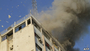 په یو بل برید کې دوه ودانۍ چې کورني او بهرني خبریالان په کې اوسېدل، په نښه شوې او ویل کېږي چې څو تنه خبریالان په کې ټپي شوي دي.