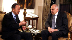 د ملګريو ملتونو سرمنشي بانکيمون قاهرې ته رسېدلی چې د خبرو اترو له هلو ځلو سره مرسته وکړي.