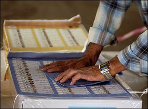 | | يک دختر جوان برقع پوش در حوزه رای گيری |