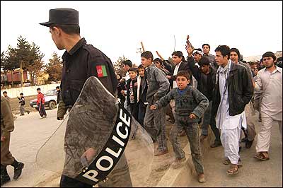 تظاهرات پس از ادای نماز جمعه در محلات احمدشاه بابا مینه در حاشیه شرقی و مکروریان چهارم و سوم در داخل شهر کابل صورت گرفت. بیش از دو هزار شرکت کننده در این تظاهرات چاپ کاریکاتورهای اهانت آمیز از پیامبر اسلام را محکوم کردند و خواهان قطع هرگونه رابطه سیاسی کشورشان با دانمارک شدند. از نخستین روزهای این هفته تاکنون در مناطق مختلف افغانستان تظاهراتی علیه چاپ کاریکاتورها براه افتاده اما خونین ترین آن در سه ولایت لغمان، فاریاب و زابل رخ داده که حد اقل چهارده کشته و ده ها زخمی برجای گذاشت. برخی مراجع تلاش دارند تا احساسات مذهبی مردم را به کنترل در آورند یکی از مقامات مذهبی افغان دو روز پیش گفت از نظر او توسل به خشونت یک عمل اسلامی نیست. | ||||||||||||||||||||||||||||||||||||||||||||||||||||||||||||||||||||||||||||||||||||||||||||||||||||||||||||||||||||||||||||||||||||