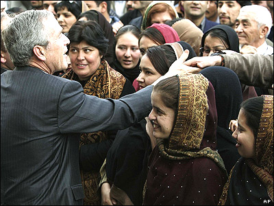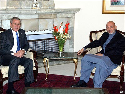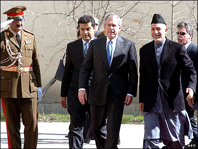 جورج بوش رييس جمهور آمريکا، روز چهارشنبه 1 مارس، به گونه غير منتظره ای وارد کابل پايتخت افغانستان شد.