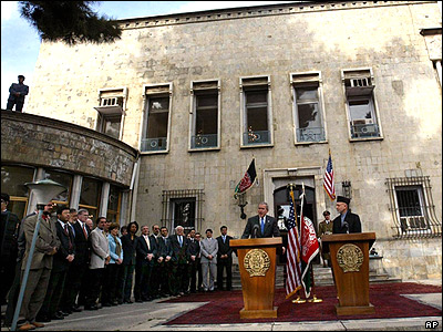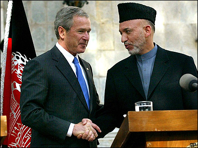 کنفرانس مطبوعاتی مشترک جورج بوش و حامد کرزی در کابل