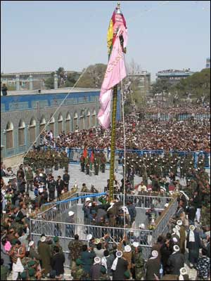 جشن نوروز در شهر "مقدس" مزارشريف در شمال افغانستان، رنگ و بوی ملی و مذهبی دارد. هزاران تن از مردم ولايت بلخ، ولايات اطراف آن و حتی مسافرانی از ديگر نقاط کشور، همه ساله در نخستين روز سال، برای زيارت آرامگاهی که به باور افغانها، منسوب به حضرت علی است و برافراشتن جهنده يا علم مخصوص، در صحن زيارتگاه اجتماع می کنند و برافراشتن علم را، با هلهله و فريادهای الله و اکبر و يا علی، همراهی می کنند. عکسهای اين مجموعه را، حنان حبيبزی، گزارشگر پشتوی بی بی سی در شهر مزارشريف گرفته است.