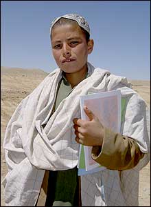 من محمد آصف هستم و در صنف اول درس می خوانم من از مين ها که آدمهای بد گذاشته اند خيلی می ترسم . دلم برای دوستانم که خانواده های شان نمی گذارند به مکتب بيايند تنگ شده است. کاش پول می داشتم و برای درس خواندن به کابل می رفتم. می خواهم برای ده خودم کار مفيدی انجام بدهم ما اينجا هيچ چيز نداريم