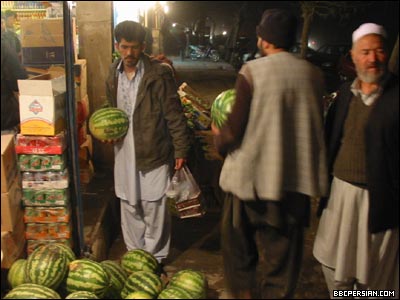 شايد برخی از مردم افغانستان، شب چله و شب نشينی ها و شادمانی های درازترين شب سال را از ياد برده باشند و يا برای برخی اقوام در اين کشور، چنين مراسمی، مفهومی نداشته باشد، اما اين سنت، امسال در شهر هرات با شکوهی بيشتر از سالهای قبل در ميان خانواده ها گرامی داشته شد. جنگ، بسياری از سنتها و خوشی های مردم را کمرنگ کرده و برخی از رسوم باستانی را، به تاريخ سپرده است، اما عبدالغنی نيکسير، نويسنده و پژوهشگر افغان در هرات، معتقد است که در گذشته، در افغانستان هم مانند برخی کشورهای منطقه، سنتهای باستانی و جوانب خوشايند آن به طور گسترده تر از امروز، گرامی داشته می شد. شب يلدا آخرين شب ماه قوس (آذرماه باستانی) است و به گفته آقای نيکسير، اين شب برای مردم افغانستان نيز همانند همزباناشان در ايران و تاجيکستان، شبی ميمون و به ياد ماندنی است. اين پژوهشگر افغان می گويد که تجليل از شب يلدا، ريشه ای آريايی دارد و بخشی از رسوم اساطيری مردمان اين حوزه تمدنی است. در اين شب، اعضای خانوادهها گردهم جمع می شوند، ميوه (مخصوصا هندوانه) می خورند و با صرف چای، شيرينی و تنقلات (آجيل)، به شب نشينی ادامه می دهند. عبدالغنی نيکسير می افزايد که مردم عقيده دارند هر قدر در اين شب، شب نشينی کنند، عمر شان طولانی تر خواهد بود. بساط ميوه و شيرينی با نزديک شدن شب چله (يلدا)، هجوم به بازارهای ميوه و شيرينی در هرات بيشتر می شود و هر کس به فراخور حال، بساطی از ميوه و شيرينی در خانه خود می گسترد. حتی اگر کسی توانايی مالی کافی برای خريد ميوه و شيرينی نداشته باشد و يا شب چله را زياد جدی نگيرد، خريد هندوانه را که مهمان ثابت خانواده ها در اين شب است، ناديده نمی گيرد. يکی از سنتهای جالب توجه مردم غرب افغانستان در شب چله، خريد هدايای "شب چله گی" برای دختران و پسرانی است که در دوره نامزدی به سر می برند. در کنار لباس، کفش و زيور آلات، جای ثابتی هم برای شيرينی، ميوه و مخصوصاً هندوانه در "خوانچه" های شب چله گی در نظر گرفته می شود. گرمی بازار ميوه و شيرينی هرات در شب چله امسال، نشانه اين است که همه افغانها سنتهای شيرين باستانی فراموش نکرده اند و با دور شدن از فضای جنگ، اينگونه سنتها، به خانه های مردم باز می گردد. عکسهايی از بازار گرم ميوه و شيرينی در شب چله هرات