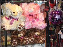 عتيق، اجناس مختلفی به اشکال قلب و خرسهای پشمالو که بيشتر به رنگ های سرخ و گلابی است وارد کرده و آن را به قيمت های نسبتا بلندی می فروشد.