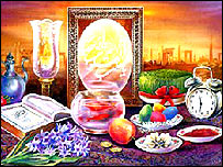 مگر اين نوروز از چه مدتی بدين سو جشن گرفته می شود، سرمحقق استاد حبيب الله رفيع می گويد: "البته در رابطه با نوروز افسانه های زيادی روايت شده است. تجليل از جشن نوروز از قرون متمادی رواج داشته است که بعد ها يکسلسله تقدسات مذهبی هم بدان پيوست. حتی سال عمر مردم هم از بهار شمرده می شد و تقويم هم از روی سال نو و تغيير فصول تعيين گرديد. از همين رو اين روز ارزش اقتصادی دارد و سراز همين روز مردم به کشت و زراعت می پردازند. و يا هم کماکان نتيجه کار و زحمات کشت شان را می بينند". با اين حال خبررسانک از بازی های ورزشی مانند بزکشی و چاپ اندازی هم ياد می کند که در نوروز برگذار می شود. در اخير خبررسانک نزد اطفال گل فروش می رود که دسته های گل لاله را برای فروش نزد دکان های گل فروشی گذاشته اند، دريچه بسته می شود. مهمانان در مورد ضيافت ها و ترتيبات نوروزی با هم صحبت های می کنند و لالو ماما از تقويم سال می گويد که در سال هجری شمسی از روز نوروز شروع می شود. بعد لالو ماما دريچه ديگری در مورد نهال و نهال شانی برای مهمانانش می گشايد. |