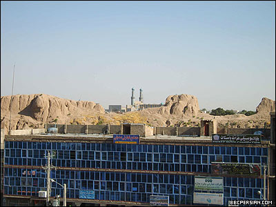 نمایی از مسجد جامع بزرگ شهر هرات، در پس ویرانه های دیوار قدیمی شهر و بازار (مارکت)های تازه ای که در حال ساختن است |