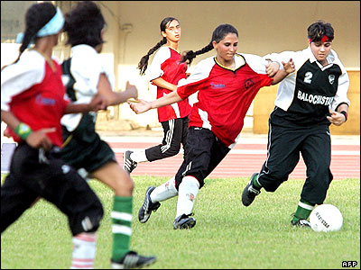 تيم فوتبال زنان افغانستان در دور نيمه نهايی مسابقات قهرمانی فوتبال زنان پاکستان، تيم ايالت بلوچستان پاکستان را یک بر صفر شکست داد. اين مسابقه در استاديوم 'محمد علی جناح' در اسلام آباد برگزار شد. تيم فوتبال زنان افغانستان تنها مهمان خارجی اين مسابقات است.