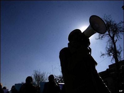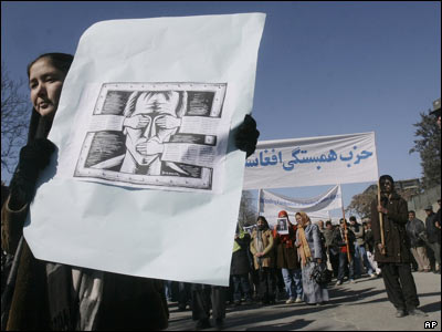 حدود دوصد تن از مردم کابل، در اعتراض به صدور حکم اعدام برای پرویز کامبخش، روزنامه نگار افغان در بلخ، در برابر دفتر سازمان ملل متحد در کابل دست به تظاهرات زدند.