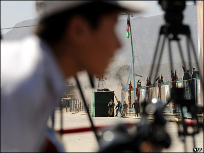 جشن سالگرد پیروزی مجاهدین در کابل با حضور حامد کرزی و شماری از مقامات بلند پایه دولتی و مهمانان خارجی، پس از وقوع تیراندازی، ناتمام ماند.