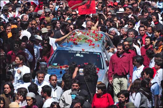 هزاران نفر در سانتیاگو شیلی برای شرکت در مراسم خاکسپاری مجدد ویکتور خارا، خواننده سرشناس و محبوب این کشور شرکت کردند. این خاکسپاری سی و شش سال پس از مرگ ویکتور خارا طی سال های حکومت نظامیان در شیلی صورت گرفت