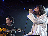 بعد منصور ترانه رو خوند ولی کمی سریعتر کلمات رو ادا می کرد. بعد هم ترانه با تکنوازیه گیتار اردشیر فرح که از خود آهنگ گل یخ الهام گرفته بود تمام شد. 40 دقیقه از اجراهای دلنشین این کنسرتهائی که دیدم ، خانم مهستی بود. چند بار بدون ارکستر تنهائی آواز خوندن...دریا منو صدا کن . . . و ترانه های طلائی قدیمیشون رو با همون صدائی که 30 ساله تغییری نکرده اجرا کردن. آهنگ بنفشه و ساقی و . . .که با این آهنگها مردم بلند شدن و کوچیک و بزرگ شروع کردن رقص.