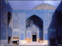 به جز مساجد و بناهايی نظير عالی قاپو و ميدان نقش جهان می توان از دو پل معروف اصفهان پل خواجو و سی و سه پل نام برد. اين دو پل آجری که اصل تقارن در آنها به دقت رعايت شده است، کاملا بر خلاف پلهای اروپايی طراحی شده اند. بناهای ساخته شده در اين زمان بر روی پلهای اروپايی، کاملا بدون ارزش های معماری بودند، چرا که در اين دوره رودخانه ها در اروپا به عنوان فاضلاب هم استفاده می شدند و ساختمانهای مشرف بر اين رودخانه ها و يا بر روی پلها محل مناسبی برای سکونت نبوده اند. در عوض پلهای اصفهان بناهای با شکوهی بودند که به عنوان مرکز اقتصادی پايتخت، نقش مهمی ايفا می نمودند.