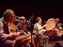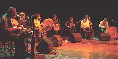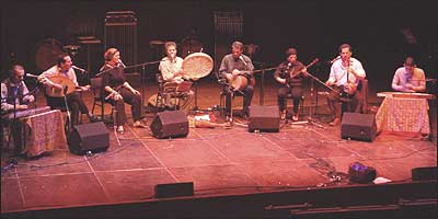 گاسپاريان را دو نوازنده ديگر به نامهای آرمن غازاريان و وازگن ماکاريان با يک دودوک ديگر و دودوک باس همراهی می کردند. اجرای سه نفره موسيقی محلی ارمنی که البته بار اصلی اش به عهده گاسپاريان بود به حدی قوی و با مهارت بود که صدا دهی اين سه ساز بادی را به يک ارکستر کامل مانند کرده بود. موسيقی گاسپاريان در برخی مواقع شباهت هائی به دستگاه های موسيقی ايرانی داشت و چندان برای شنونده ايرانی غريب نبود. مشخص نيست که چرا موسيقی محلی ارمنی و سازهای مربوط به اين موسيقی مانند دودوک، با توجه به نقش ارمنی ها در رشد موسيقی علمی و غربی در ايران چندان شناخته شده نيست. گاسپاريان اين برنامه را با خواندن قطعه ای آواز به زبان ارمنی پايان برد و در زمان خواندن همراه با بسياری از تماشاگران می گريست. پس از موسيقی ارمنی، گروهی دو نفره به نام " بريو ناتوراله" با نواختن ويولا و سازهای کوبه ای و پخش آواز ضبط شده، قطعاتی را از بريو اجرا کردند که البته چندان با سليقه علاقه مند موسيقی ايرانی و يا شرقی جور نبود. بخش چهارم به موسيقی محلی ساردينيا اختصاص داشت. يک گروه چهار نفره که تشکيل شده بود از يک رهبر و تکخوان و سه خواننده ديگر که او را همراهی می کردند، دور هم حلقه می زده بودند. اين برنامه با وجود جالب بودنش کمی طولانی به نظر می رسيد. کامکارها و موسيقی محلی کردستان