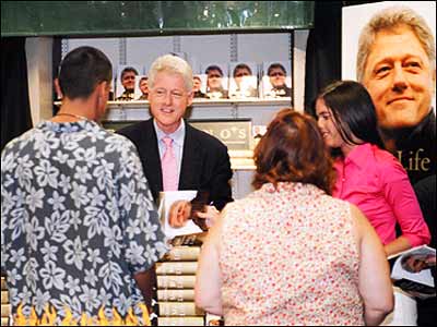 با مردم که صحبت می کردم متوجه شدم که بعضی ها از شب آمدند در آنجا برای گرفتن نوبت! اين عده چيزی در حدود ۱۲ تا ۱۸ ساعت توی صف ايستاده بودند که فقط ۵ ثانيه برن جلوی آقای کلينتون، کتابشون رو بدهند ايشون امضاء کنند و بعد بيايند بيرون!
