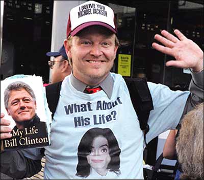 يک عکسی هم که من گرفتم و عجيب است، اين بود که يکی از طرفداران Michael Jackson اومده بود و کتاب Bill Clinton دستش بود، روی تی شرتش هم عکس مايکل با اين نوشته که " پس تاريخچه زندگی مايکل چی ؟ " ديده می شد ... با انگشتش هم به کتاب بيل کلينتون و تی شرتش اشاره کرده بود و اين از نظر من خيلی جالب بود.