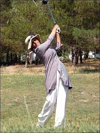 گلف لباس مخصوصی می خواد؟ بله گلف کفش مخصوص خودشو داره که بخاطر اينکه وقتی ضربه می زنيم پاهامون نچرخه زيرش ميخ داره و لباسش از جنس مخصوص درست شده تا بدن راحت تر بتونه حرکت کنه. وقتی به ايران آمدی چيکار کردی؟ وقتی به ايران برگشتم تصميم جدی گرفتم که ادامه بدم و وقتی فهميدم که در ايران هم زمين گلف هست خيلی خوشحال شدم. مگه در ايران هم زمينهای گلف استاندارد هست؟ البته در ايران فقط يک زمين چمن استاندارد مخصوص گلف در تهران داريم اون هم در باشگاه انقلابه که نسبت به زمينهای کشورهای ديگه هم کمی يايه کم کوچک تره و دو تا زمين خاکی ديگه در دو تا از شهرستانها هست که تقريبا سی سالی می شه که درست شده اند. زمين مخصوص گلف بايد دارای چه مشخصاتی باشه؟ گلف احتياج به فضای زيادی داره و زمين بسيار وسيعی رو نياز داره ، چيزی حدود سی چهل هزار متر مربع.