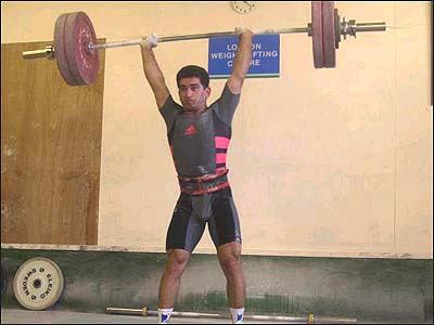 بيشتر برامون توضيح بده در چه وزنی در المپيک يونان شرکت می کنی، چه وزنه ای رو بلند می کنی و رکورد قبلی خودت چقدر هست؟ البته اين مقدار تقريباً ۴۰ تا ۴۵ کيلو کمتر از رکوردهای من در ايران بود. اين هم به خاطر شرايط بدی هست که من دارم. در حقيقت نزديک دو سال و نيمه که من کمر درد دارم. البته بعد از معالجات بسيار اين درد کمتر شده، ولی متاسفانه زانوی من، در شش ماه گذشته خيلی اذيتم کرد. تمريناتم رو تقريباً چهار هفته هست که شروع کردم و سعی می کنم با همين شرايط، رکورد بريتانيا رو بهبود ببخشم و بتونم خودم رو از سالهای گذشته بهتر نشون بدم.