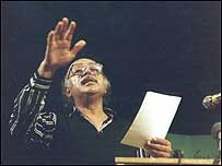 اما غير از زمامداران، همه شنوندگان کشته و مرده اين بددهنی او هستند. يادم می آيد آن موقع ها (قبل از انقلاب) ما هر روز به ريل و حمد (خط آهن و حمد) که حماسه ای عاشقانه است از راديو بغداد گوش می داديم و با قهرمانان آن می خنديديم و گريه می کرديم. توليد راديويی اين اثر مردمی، محصول زمانی است که حزب بعث هنوز فرهنگ و هنر مردمی را به کلی سرکوب نکرده بود. نيز يکی دو نوار هم از او داشتيم که نسخه شعرخوانی های او در کشورهای کم و بيش مترقی عرب بود؛ مثل سوريه و ليبی. ما مخصوصا از شب شعر او در ليبی لذت می برديم، چون در آن شب، فروشندگان فلسطين را (که در شعر او دختری عذرا و معصوم است) به باد ناسزا و استهزا گرفته بود. البته شعر او قبل از هر چيز شعر بود، بعد يک سند سياسی مترقی. قرار ما در کافه بالی در وسط آمستردام بود. يادآوری کنم که اين کافه معمولا محل تجمع روشنفکرها و هنردوستان هلند است. بغل همين کافه سالن هايی هست که در آنها برنامه های فرهنگی برگزار می شود. برای من اين يک ديدار بسيار شورانگيز بود. من کسی را می ديدم که تقريبا همه دوستش داشتند، جز زمامداران. بعدها به من توضيح داده شده بود که شبهای شعر او در دمشق و ديگر پايتخت های عرب شبهای راه بندان بود. انگار که مسابقه فوتبال باشد. حماسه ريل و حمد او غير قابل ترجمه است، زيرا به لهجه عراقی است. زبان شعر از قلب زبان مردم بيرون کشيده شده است. هر بيت آن از خاطره و اشاره و کنايه پر است، اشاراتی که در جان جان عراقی ها می نشيند. از آنجا که لهجه مردم "خوزستان" تقريبا کاملا شبيه لهجه اهل بصره است، مردم با جان زبان او کاملا آشنا هستند، به ويژه روستانشين عرب و لايه های پيشرو شهرنشين. راستی مظفر النواب در ايران هم مدتی زندانی شده و به همين دليل کمی فارسی می دانست. مثل همه آدمهای بزرگ مظفر النواب خيلی عادی و مردمی بود. منظور من اين است که اگر نمی دانستی که او همان شاعری است که شنوندگان خود را با شعر خود به جنون می کشد، فکر می کردی با يک کارمند عادی روبرو هستی. در اولين ديدار ما واقعا نمی دانستيم از کجا شروع کنيم. تا اينکه دوست نقاش فلسطينی به دادمان رسيد. او شروع کرد به معرفی کردن من. اينکه من شاعر و نويسنده و مترجم هستم و به زبان انگليسی و فارسی شعر ميگويم... ناگهان، اما آرام، مظفر النواب در آمد و گفت در لندن خانمی عراقی بعضی از شعرهای او را به انگليسی ترجمه کرده است. "اگر فرصت داری يک نگاهی به آنها بنداز". گفتم من مخلص او هستم و حتما اين کار را می کنم. همانجا شعرها و ترجمه ها را از کيفش در آورد و به من داد. من به آنها نگاهی انداختم. به نظرم رسيد که ترجمه ها بد نبودند، ولی بهتر از آن هم می توانستند بشوند. "خوب چی فکر می کنی؟" گفتم: "خوبند". مظفر لبخندی زد و سرش را پائين انداخت. بعد سرش را بلند کرد و به من نگاه کرد و هيچ نگفت. تا اينکه جمال گفت: "وقتی عدنان ميگويد خوب است، معنيش اين است که بهتر هم می شوند." اين بار من لبخند زدم و سرم را پائين انداختم. خلاصه. قرار شد من شعرها را دوباره ترجمه کنم. گفتم "به شرط آنکه ترجمه مرا به همکار عراقيم نشان دهيد." مظفر با مهربانی گفت: "آن خانم مترجم حرفه ای نيست؛ شعر مرا دوست داشت و ترجمه اش کرد. اما اين را بر عهده من بگذار." با اشتياق اشعار را ترجمه کردم و در قراری ديگر در همان کافه شعرها را برای او خواندم. "چه لهجه بريتيشی داری"، مظفر گفت. سرم را پائين انداختم و چيزی نگفتم. هنوز آنقدر رويم با او باز نشده بود که به او بگويم من عاشق لهجه بريتيش هستم و تا دلت بخواهد به لهجه آمريکايی بی علاقه. ولی به هر حال نتوانستم زياد طاقت بياورم و گفتم. مظفر که با همه حجبش (و من تعجب می کردم که شاعر دليری مثل او چطور اينقدر محجوب است) گاهی صريح می شد، لبخند زنان به من نگاه کرد و گفت: "اگر والت ويتمن يا آلن گينزبرگ شعر بخوانند باز هم از لهجه آنها بدت می آمد؟" خجالت کشيدم و سرم را پائين انداختم. گفت: "ولی من هم لهجه بريتيش را بيشتر دوست دارم." نمی خواست که من خيلی خجالت بکشم، لابد.... از صدای من هم تعريف کرد