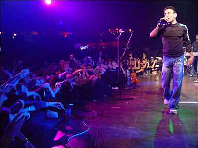 بعد از کنسرت پريدم پشت صحنه و با شادمهر يک گپ کوتاهی زدم که بعدش پشيمون شدم! چرا؟ حالا گفتگو: شادمهر اولين بار تو رو در دوبی ديدم. کنسرت امشب لندن هم آخرين کنسرت تو از سری کنسرت های اخيرت بود. چه حسی بعد از اين همه کنسرت داری؟ اجرای پشت سر هم خيلی سخته! اين مدت به تو چطور گذشت؟ شادمهر، الان ديگه بعد از کنسرت های مختلف تو عوض شدی و يک شادمهر ديگه شدی، احساس خودت چيه؟ يک سوالی بچه ها پرسيدند اينکه تو در سايت اورکوت Orkut اسم داری؟ چون دو سه نفر به اسم شادمهر عقيلی توی اورکات عضو هستند و همه هم ادعا می کنند که شادمهر هستند! شادمهر جان پرسيدند آهنگ "ستاره" رو چرا توی اين کنسرت ها کم اجرا کردی؟ خبردار شدم که برای عيد قرار شده برای بچه های بم يک آهنگ کار کنی، درسته؟ ما منتظر خودت هستيم! کلاً از نکات مشخص اجرای زنده شادمهر هنر نوازندگيشه که به کنسرتهاش تنوع ميده و با محبوبيتی که بين جوونا داره، و ابتکارش در اجرای زنده ( مثل صحنه دستگيريش تو کانادا) بدون شک جای خودش رو بين خوانندگان ايرانی خارج از کشور باز کرده. ولی آخر شب چی شد... برای گرفتن کتها سف طولانی تو سالن بسته بودن که آخر نداشت و دعوائی که بين انتظامات سالن و مردم شد و در نتيجه اش پليس دخالت کرد!!! نتيجه... خيلی خوش گذشت و نسبت به کنسرتهای لندن خوب و منظم برگزار شد و همه چيز سر وقت بود. به نسبت اون دو هزار نفری که کنسرت آمده بودن جو خيلی مثبت بود. |