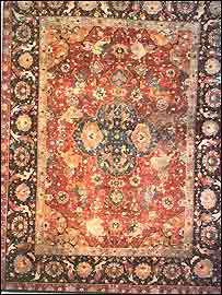 در نمايشگاه قالی های بزرگی می بينم که ابعاد معمولی ندارند و مخصوص محلهای خاصی در کاخهای صفويه بافته شده اند مثل قالی هايی به اندازه دو متر و نيم در هفت متر و يا مربع کامل در حدود پنج متر در پنج متر.