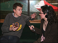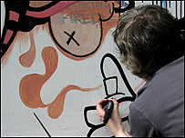 و چه جايی بهتر از شرق لندن که آدم می تونه با قدم زدن تو خيابونی به اسم "بريک لين" در حاشيه جشنواره، برنامه های ديگری هم اجرا می شد. هنرمندها بوم های نقاشی شون رو کنار پياده رو چيده بودن و همونجا نقاشی می کردن. به اين هنرمند ها می گن Live Artists يا نقاش هايی که به طور زنده و در ملا عام نقاشی می کنن. در اينصورت فقط حاصل کار مهم نيست بلکه عمل نقاشی کشيدن مهمه که به صورت يک نمايش ارائه می شه. در کنار اين نقاش ها، بخشی از هنر ژاپن به نام" ماتسوری" هم عرضه می شد. هنرمندان ژاپنی در کنار پياده رو مشغول به ساختن سکوهای پله داری بودن که با نقاشی، شاخه های گل، برگ و چوب تزئين می شدن. در ژاپن به اين سکوها می گن ماتسوری. با يکی از طراحان اون صحبت کرديم که يک جوون 19 – 20 ساله ژاپنی بود به اسم کن.